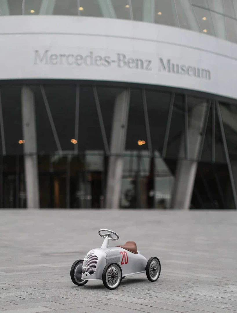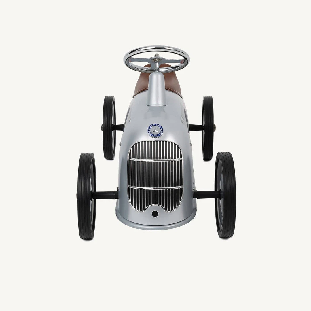 Baghera‘s beautiful vintage style Rider is the ultimate dream ride-on car for your mini motor enthusiasts. With its shiny silver metal body and smooth lines, this beautiful collaboration with Mercedes-Benz is perfect for children 2 years + who love to adventure! Inspired by the legendary Mercedes-Benz W 25 Silver Arrow, this racing car made its first appearance in June 1934 at the International Eifel Race at the Nürburgring in Germany, where it won!