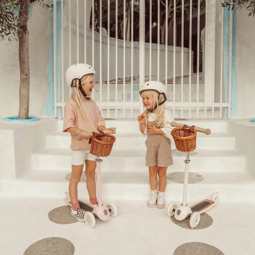 Banwood’s Vintage Designed Scooter is the newest member to Banwood family. The 3 wheel Scooter features Banwood’s patented Easy Ride Steering System, an exclusive plywood non-slip scooter deck, an adjustable T-bar to adapt as the child grows, comfortable rubber grips and their characteristic wicker basket for bringing the essentials out for the adventure. The Banwood Scooter is the first collection of children’s scooters, created based on the company’s vision of positively influencing an active lifestyle for children by developing unique and quality products that allow them to create fun memories as they develop as individuals.