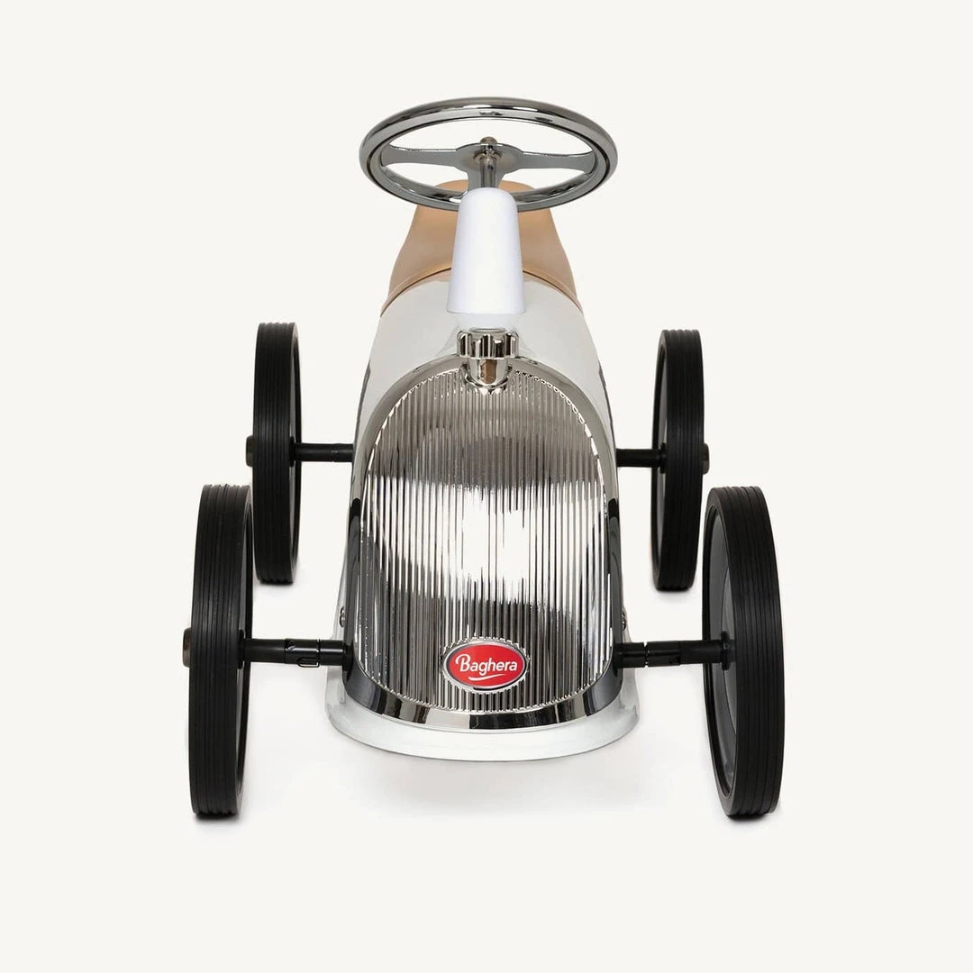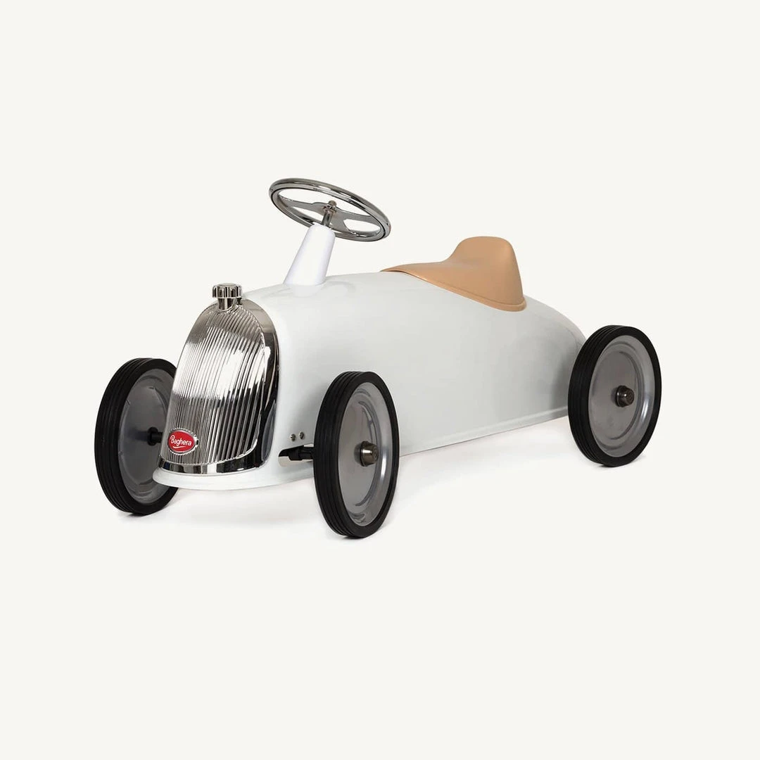 Baghera‘s beautiful vintage style Rider is the ultimate dream ride-on car for your mini motor enthusiasts. With its sleek white body and shiny features, it’s perfect for children 2 years + who love to adventure!