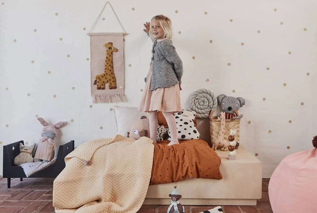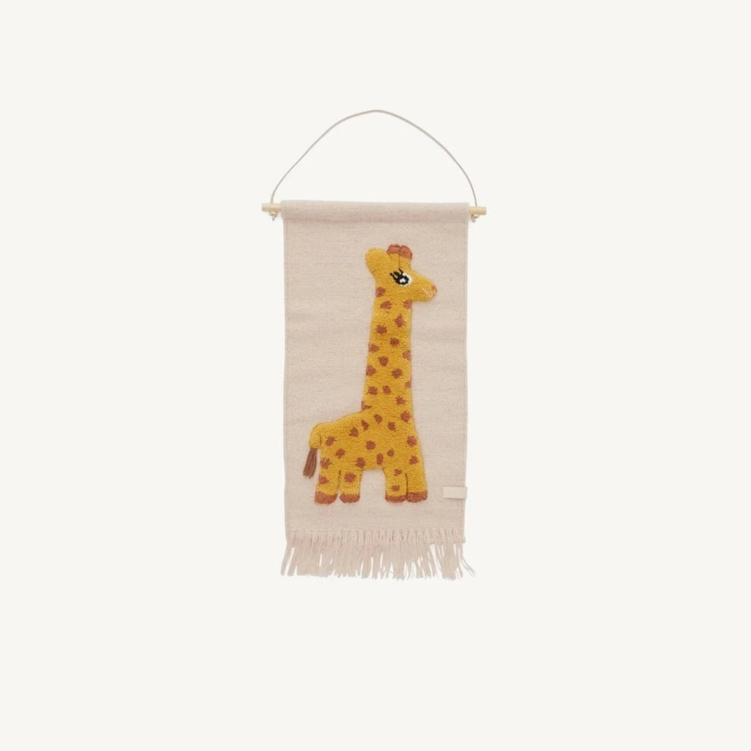 Giraffe Wallhanger by OIOI. This beautiful Giraffe Wallhanger is a lovely decorative piece for your child’s play room or bedroom. The playful collection which also includes a Lion and Tiger make a beautiful eye catching feature whether hung individually or grouped together. The soft muted colours blend beautifully in the home, giving it a lovely warm feeling, perfect for animal themed rooms and mixing other animal accessories!