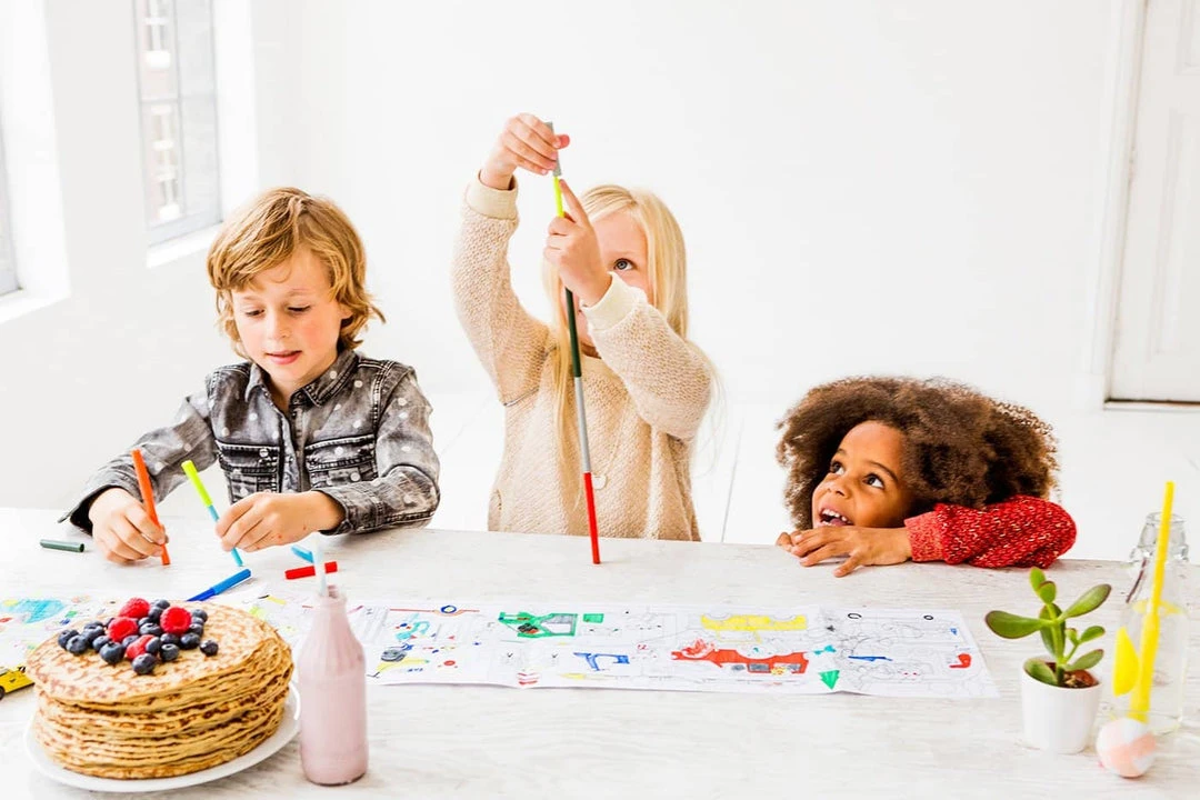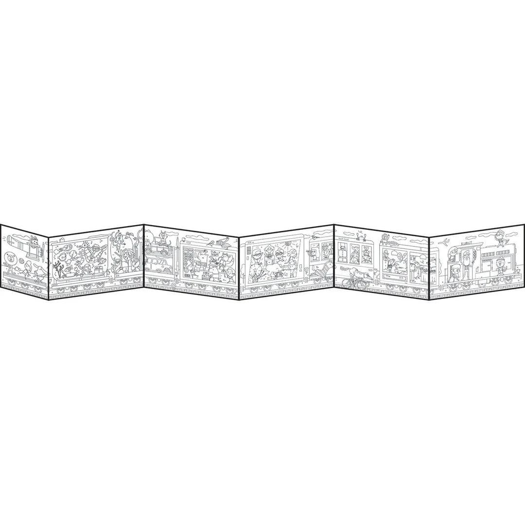Makii Whopping Wide ‘Train Ride’ Colouring Picture A giant colouring picture full of crazy and colourful characters which folds out from A4 size to a whopping 159.5 cm! Grab your colouring pencils and get your family and friends to join. Take a look in carriage two, help sort the mail, take a dive in carriage seven and play cards with mister boar. This huge colouring picture will keep the kids busy for hours!